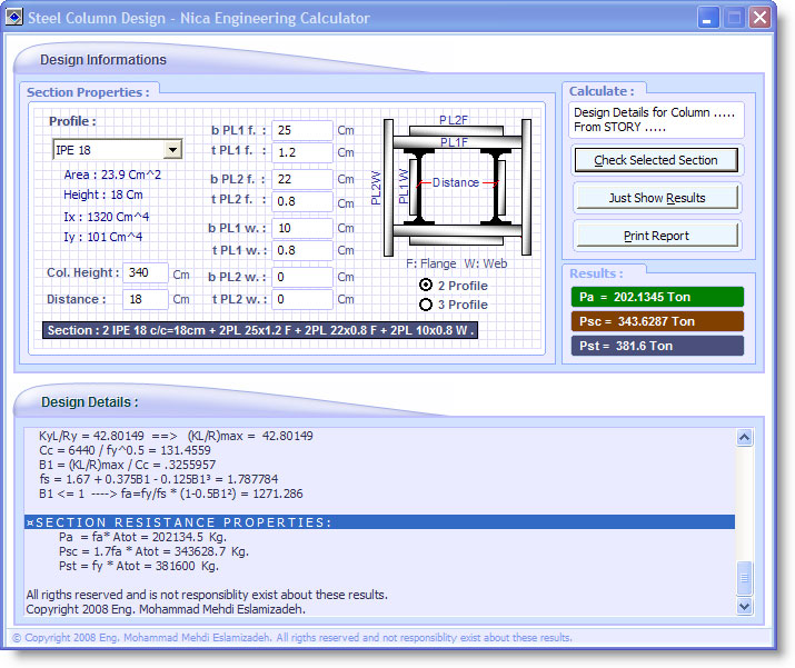 • Steel Column Design  ابزاری برای طراحی ستونهای فلزی متشکل از پروفیل های معمول   دوتایی یا سه تایی بهمراه پلیت های تقویت بال و جان