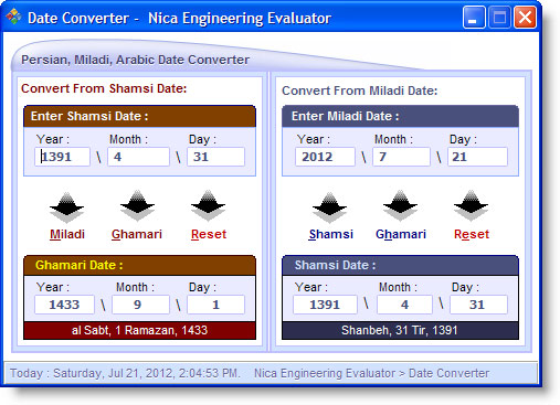 • Date Converter ابزار تبدیل تاریخهای میلادی، قمری و شمسی به یکدیگر